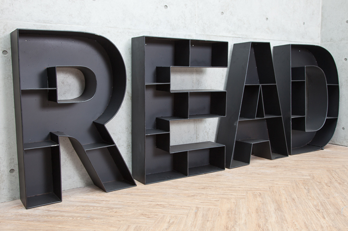 多樣設計:東齊金屬工業股份有限公司提供OPUS 英文壁飾落地書架 READ書櫃 書店咖啡廳民宿適用 文創書架 創意書架 立體書架 書房擺飾收納的多樣化設計,如有需要請與我們聯絡,