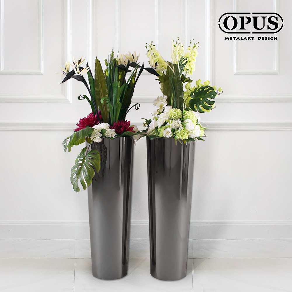 不鏽鋼藝術 圓錐花器 大型落地花瓶-黑色 櫥窗展示 裝置藝術 金屬花瓶 展場擺飾 空間布置 OPUS 東齊金工 VB006-B接受進行原廠委託代工製造OEM