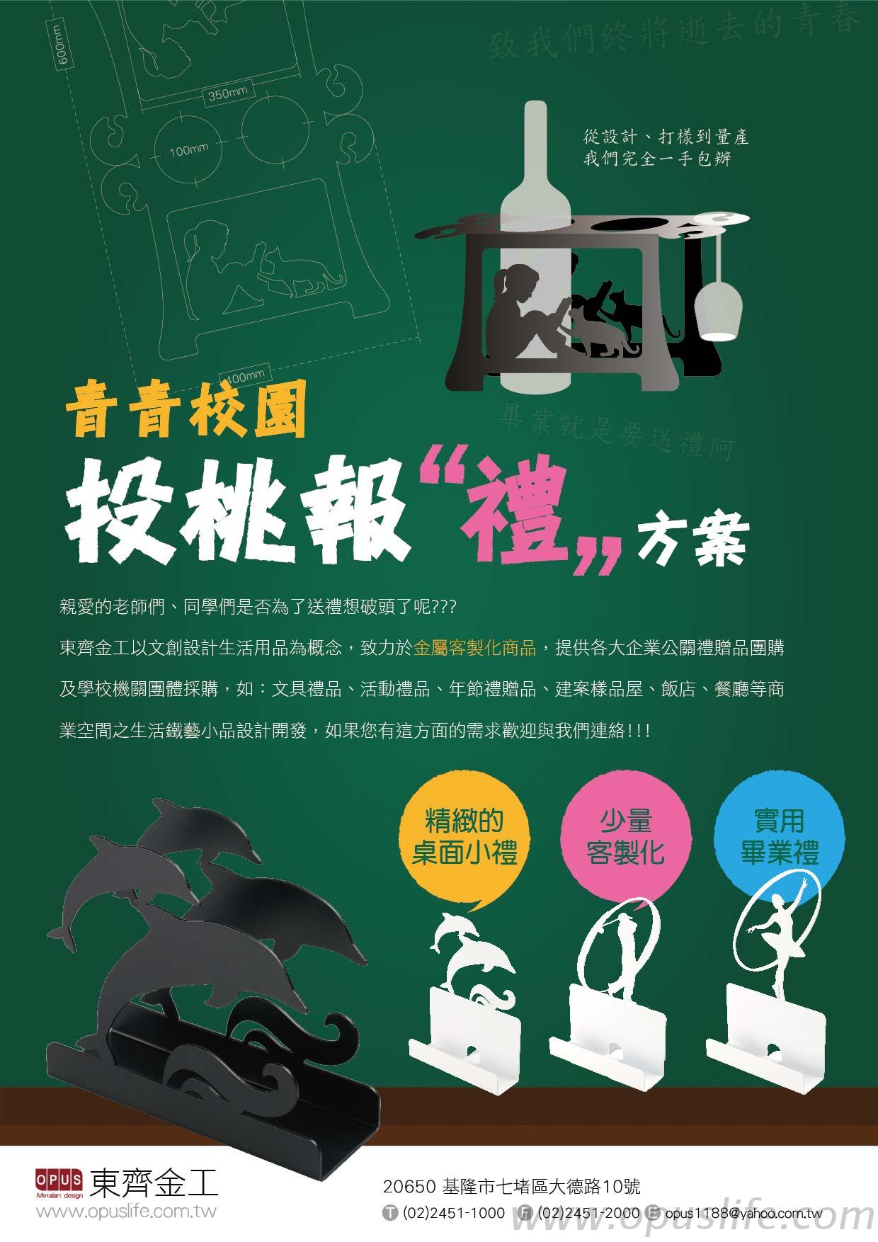 東齊金工以文創設計生活用品為概念,致力於金屬客製化商品,提供各大企業公關禮贈品團購及學校機關團體採購,如:文具禮品、活動禮品、年節禮贈品、建案樣品屋、飯店、餐廳等商業空間之生活鐵藝小品設計開發,如果您有這方面的需求歡迎與我們連絡。